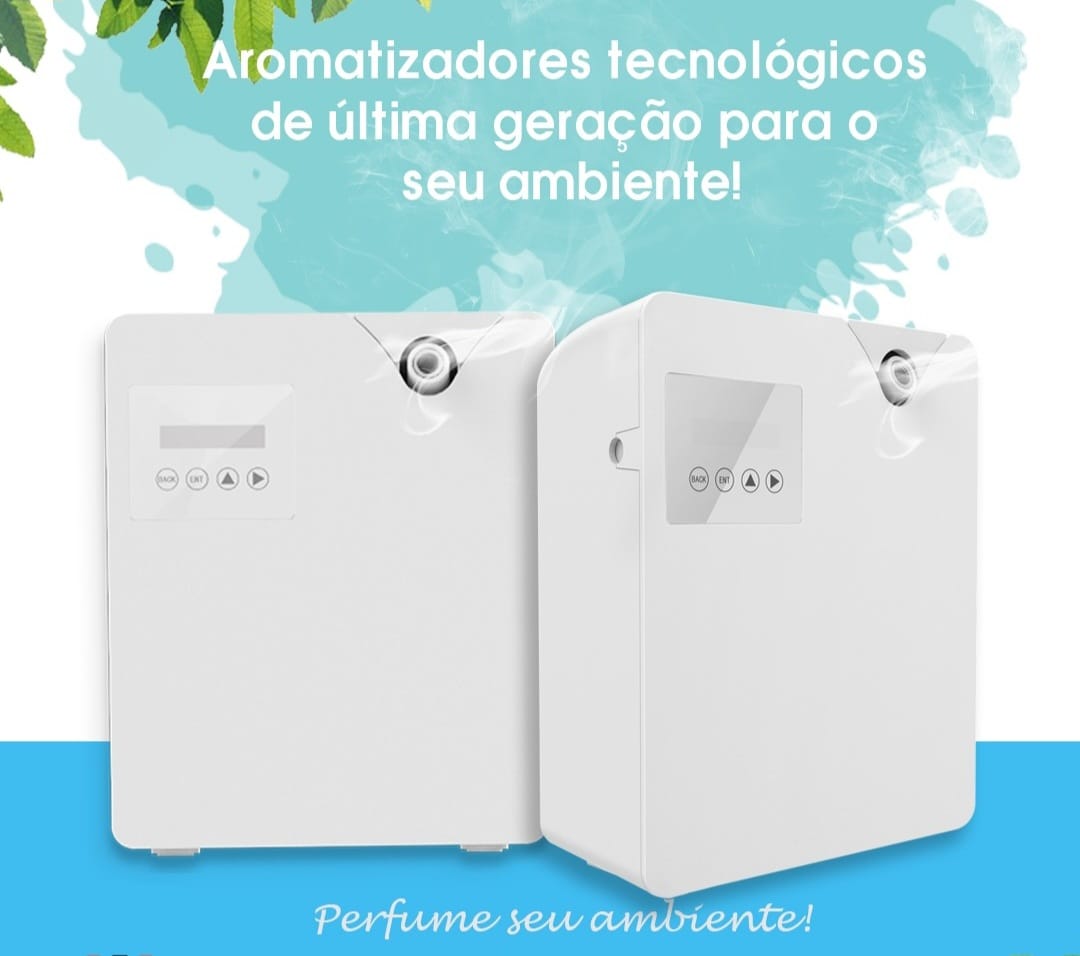 Aromatização fácil e tecnológica. Utiliza a tecnologia de nebulização que gera nano-gotas (um milhão de vezes menor que uma gota de aerossol), fazendo com que a essência se distribua completamente no ambiente e permaneça por muito mais tempo o efeito do perfume.